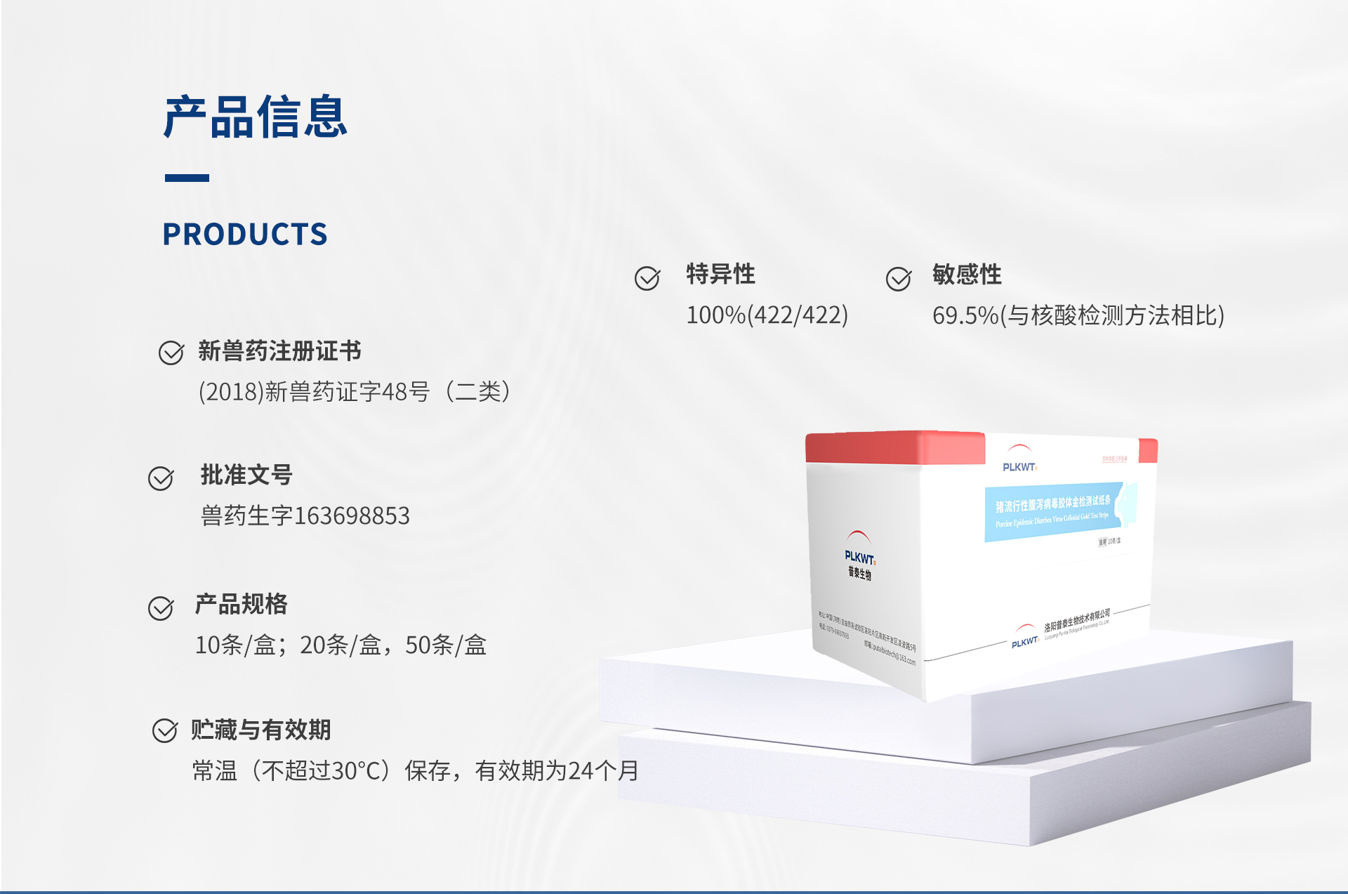 作用與用途:用于檢測(cè)豬肛拭子、糞便及小腸內(nèi)容物和病毒培養(yǎng)物等樣品中的豬流行性腹瀉病毒抗原。